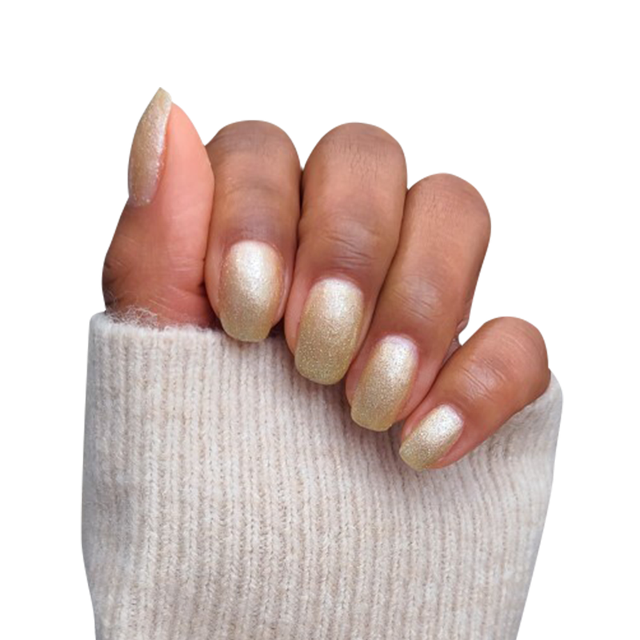 The silvery-gold sheen of this sheer polish is out-of-this-world.